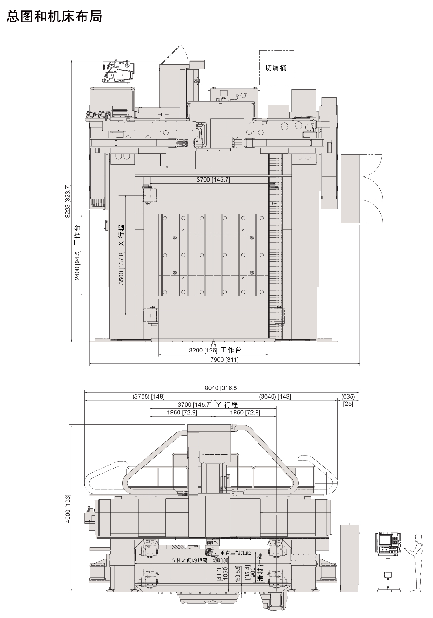 工作臺(tái)面與車間地板等高,無需使用階梯,操作員易于接觸風(fēng)箱,提高了作業(yè)效率。壁式立柱可防止切屑積聚在機(jī)床的周圍。立柱朝縱向安裝在工作臺(tái)兩側(cè),以導(dǎo)軌支承,實(shí)現(xiàn) X 方向的橋軸行進(jìn)。